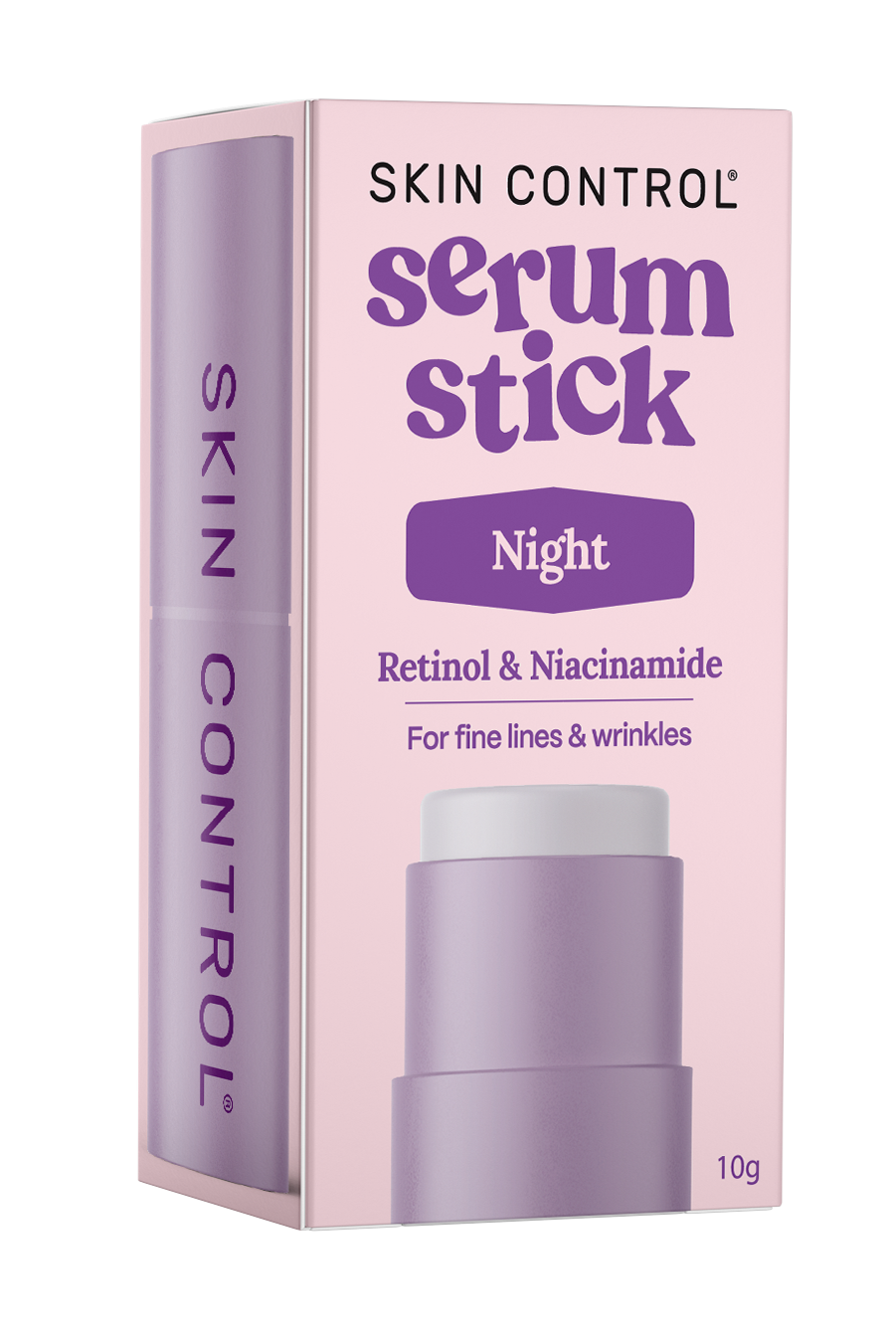 Skin Control Serum Stick Night blends Retinol and Niacinamide into a convenient, concentrated balm-to-serum formula. It glides on effortlessly and melts into your skin, helping to reduce the appearance of visible fine lines, wrinkles, and hyperpigmentation.